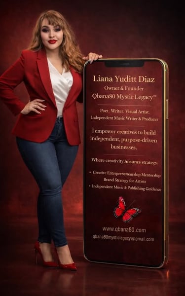 Qbana80 Mystic Legacy™ is a creative brand founded by Liana Diaz, dedicated to original fantasy storytelling, artistic blog articles, and motivational writing published online for readers and dreamers around the world. The brand blends mystical visual art, emotional storytelling, and reflective narratives that explore identity, healing, strength, and imagination. Qbana80 Mystic Legacy™ also extends into music, with original songs released across major social platforms, creating a multi-sensory experience where words, visuals, and sound come together. Every creation is rooted in authenticity, creativity, and purpose, offering inspiring content for those who believe in art with meaning and stories that leave a lasting legacy.